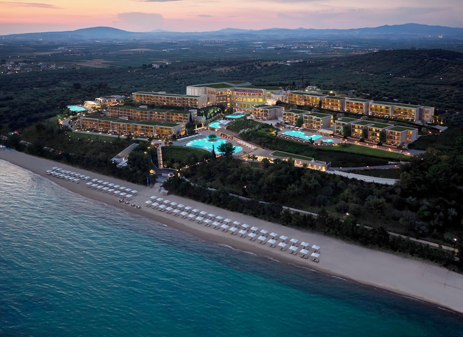 Ikos Oceania’s prime beachfront location gives guests direct access to the sandy shores of Halkidiki’s coast. Whether you’re lounging by the beach or taking in the stunning views, the resort offers a perfect setting for a luxurious Greek escape.