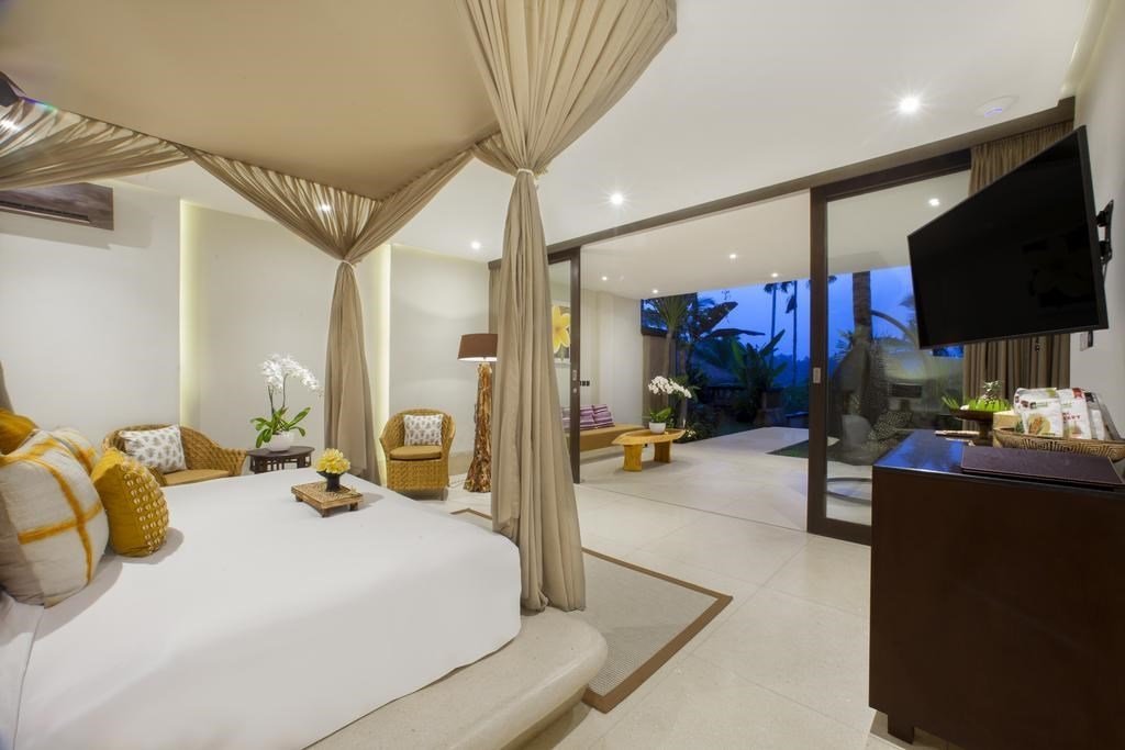 The resort features elegant villas set on the hillside, offering stunning views of the jungle. Each villa is designed to harmonise with the environment, providing a true Balinese experience with modern amenities like free Wi-Fi, air conditioning, and private balconies. Some villas also include private plunge pools for added relaxation.